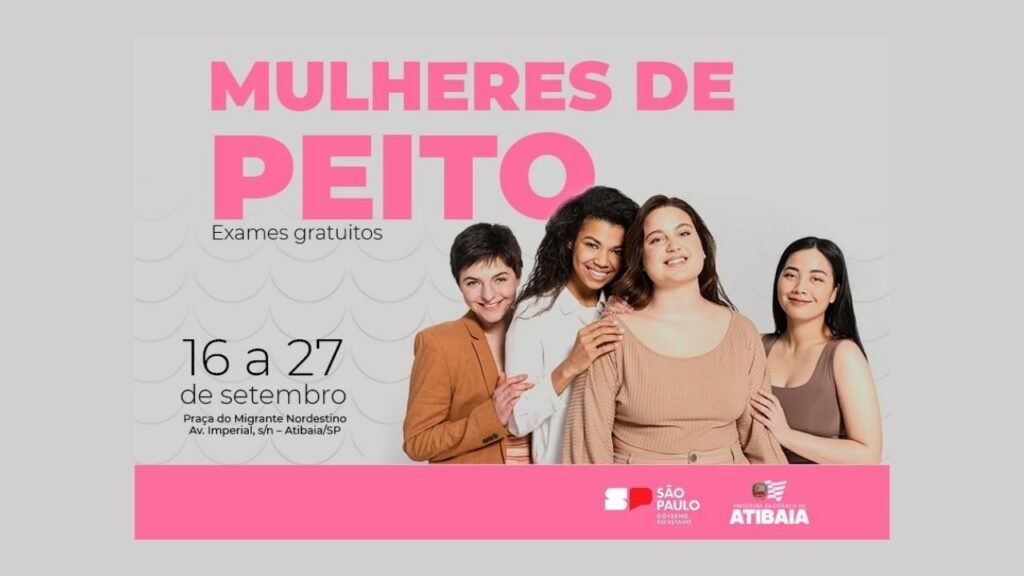 A carreta do programa “Mulheres de Peito” chega a Atibaia em setembro e realizará atendimentos entre os dias 16 e 27, oferecendo exames gratuitos de mamografia na Praça do Migrante Nordestino, localizada na Av. Imperial, s/n, no Jardim Imperial. A iniciativa do Governo do Estado de São Paulo é voltada principalmente para mulheres de 50 a 69 anos, que não precisam de pedido médico para a realização do exame. Já pacientes de 35 a 49 anos e acima de 70 anos também poderão ser atendidas, desde que apresentem pedido médico do SUS.