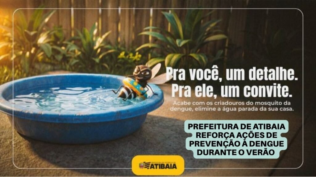 Durante o verão, as altas temperaturas e o aumento das chuvas favorecem a prevenção do mosquito da dengue, o que exige atenção ainda maior de todas as ações preventivas. A campanha “Pra você, um detalhe. Pra ele, um convite”, realizada pela Prefeitura de Atibaia, reforça que alguns descobertos do dia a dia podem favorecer o surgimento de criadores do mosquito Aedes aegypti . Uma tampa de garrafa, um pratinho de planta ou uma calha entupida com água parada são exemplos que criam o ambiente ideal para a reprodução do vetor.